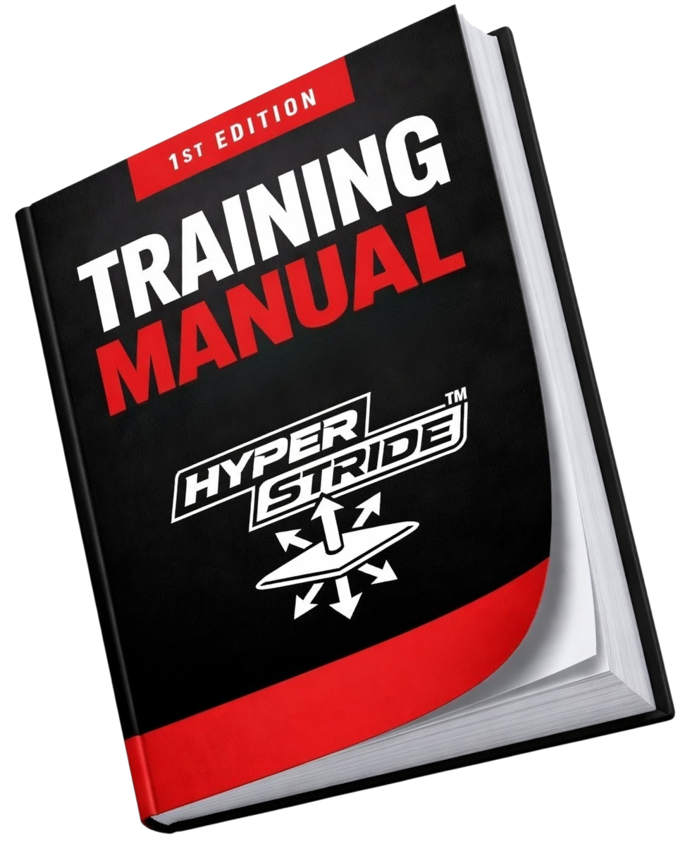 The Hyper Strides’ patented design features a base of linear wheels and a mounted rotational platform for the hand and foot placement.