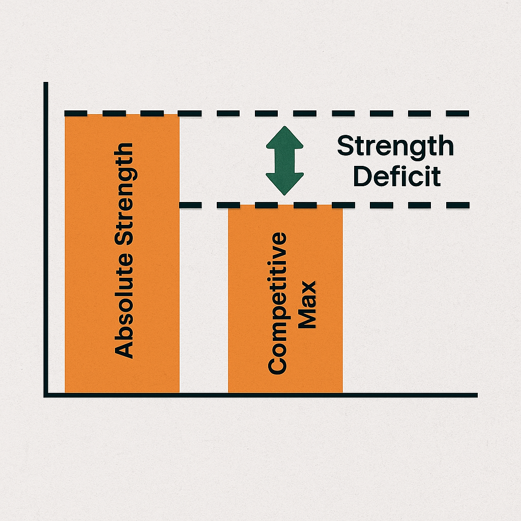 The capacity within the athlete to generate maximal force in the most ideal environment (training) relative to the forces displayed during sport (under duress).