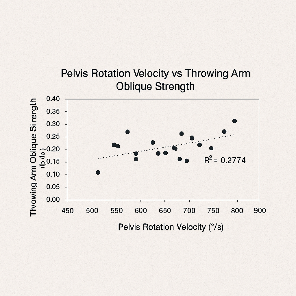 This chart highlights the clear correlation between arm-side (and glove side) oblique strength and rotational velocity all the way up the kinetic chain.
