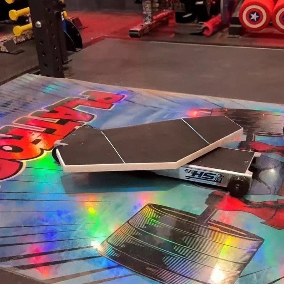 The Chassis (bottom Wheels)- approved for community (multi-board) usage on standard gym flooring, rated for 500 lbs. The PRO Model is rated for 250 lbs.The Z-Board (rotating top)- Recommended for individual use only, rated for 300 lbs, protected for 2 years. The Customer is entitled to 1 FREE replacement board under this policy.