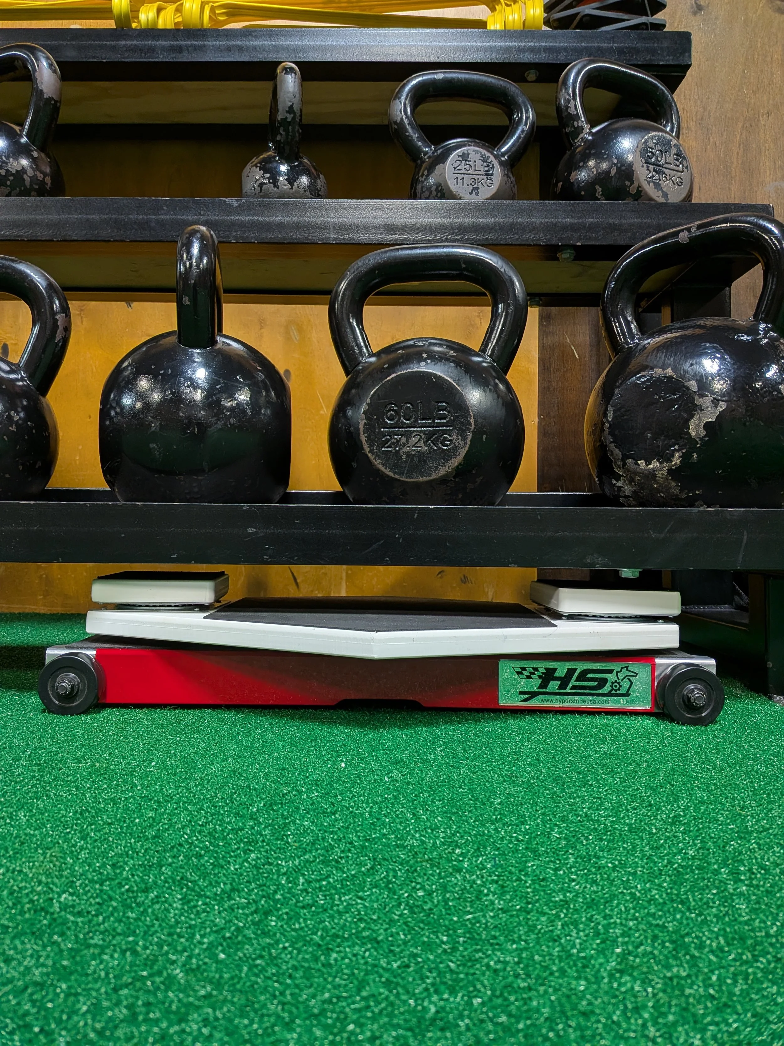 You get The “X1 Steel” Chassis (bottom wheels) + The “Signature Z-Board” (20” rectangular rotating top with concave design for added exercise stability).